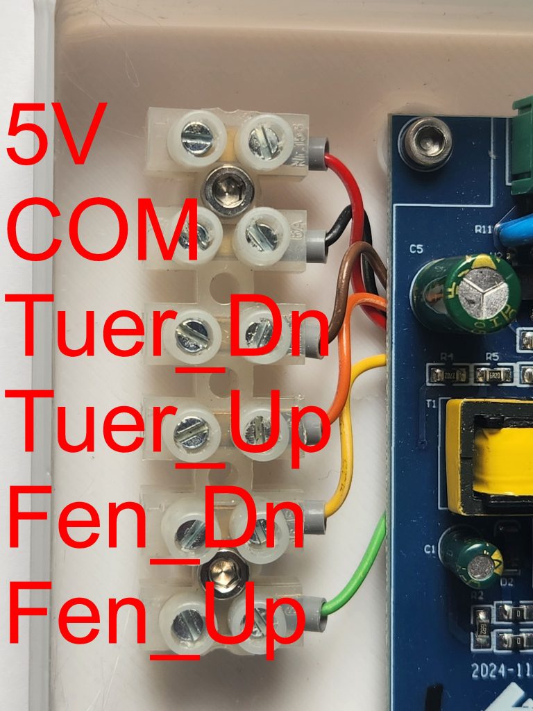 Für das Foto habe ich GPIO13 an der Lüsterklemme mit GND versorgt. Dadurch wird „Tuer_Up“ als „Ein“ registriert.