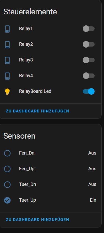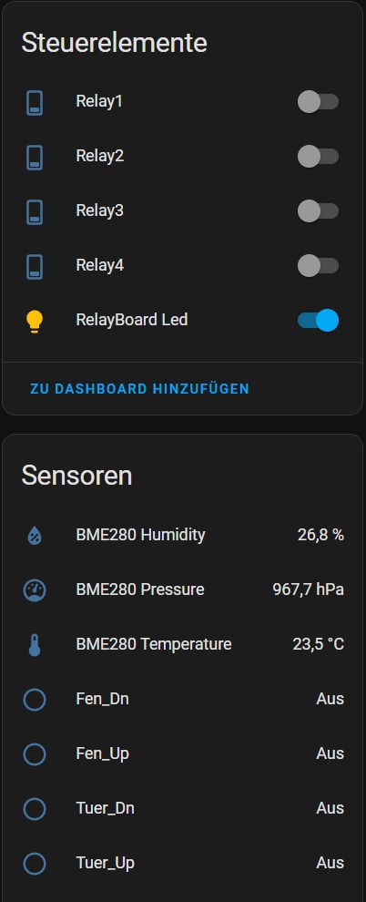 Jetzt fehlt eigentlich nur noch die Logik im Home Assistant, wie all die Sensoren und Relais benutzt werden sollen, denn noch haben wir alles nur einzeln ohne Beziehung zueinander.