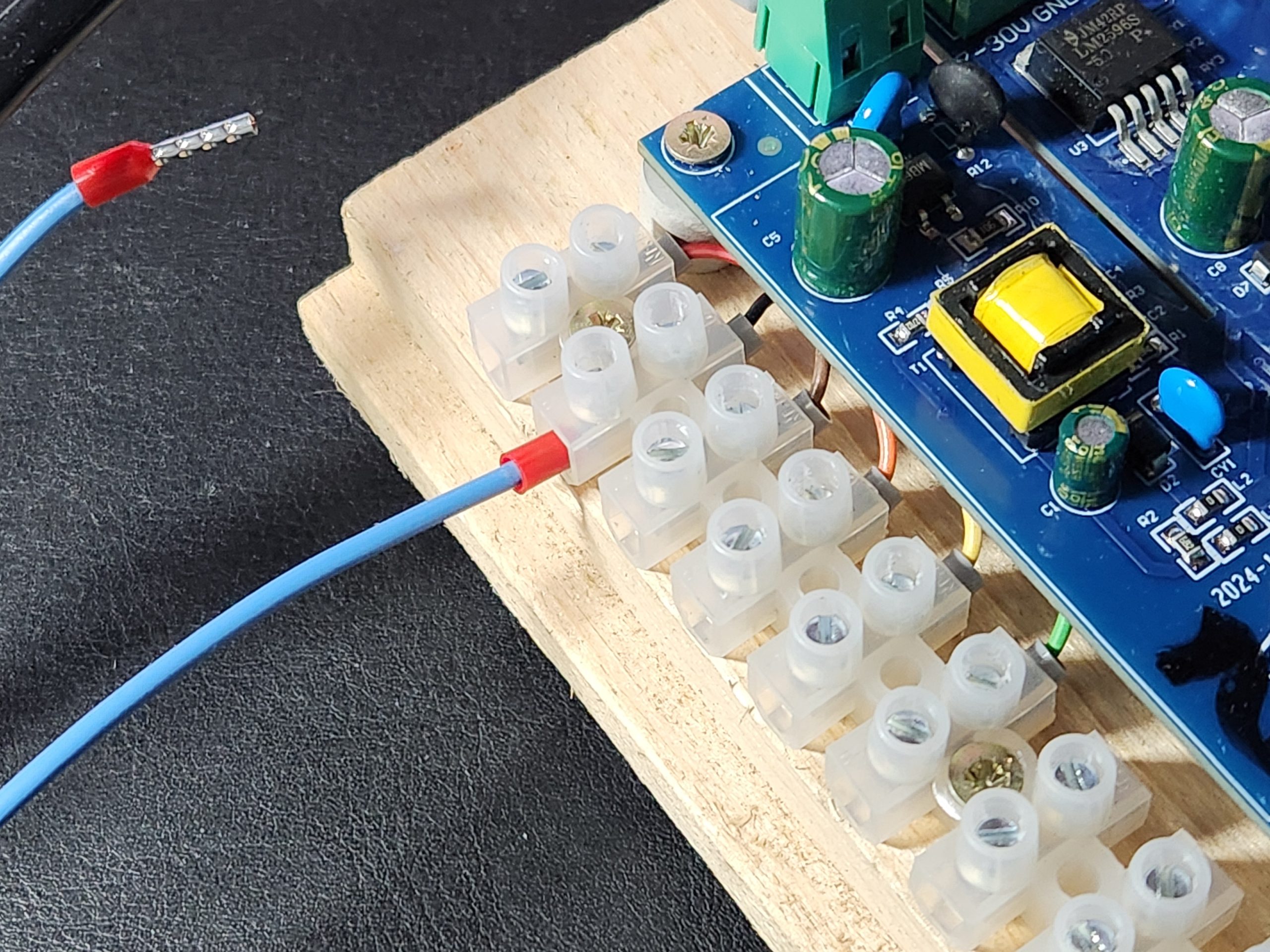Die Stiftleiste ist in keinster Weise dazu geeignet die bei Schaltern üblichen Kabelquerschnitte aufzunehmen. Also muss man nochmal „umklemmen“: